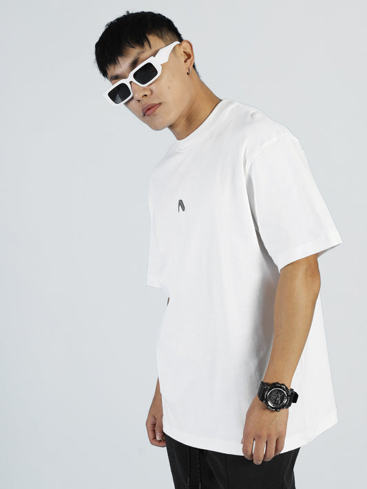 ALP Mode Men’s Bright White Oversized Supmia Cotton T-Shirt – Solid Baggy Fit Streetwear Tee